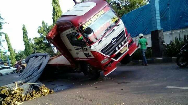 Saat melintasi jalan bergelombang, truk yang dikemudikan oleh Kadek Dwi (37), warga Desa Dangin Tukad Aya, Kecamatan Negare, Kabupaten Jembrana, Provinsi Bali itu ambruk. Alhasil, muatan besi terjatuh kesisi kiri badan truck dan tumpah ke badan jalan sebelah utara. Beruntung sopir tidak mengaami cidera serius.