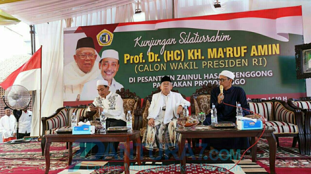 PROBOLINGGO-PANTURA7.com, Calon Wakil Presiden (Cawapres) RI, KH. Ma’ruf Amin bersilaturahmi ke Pondok Pesantren (Ponpes) Zainul Hasan Genggong, Desa Karangbong, Kecamatan Pajarakan, Kabupaten Probolinggo, Jum’at (28/9/2018).