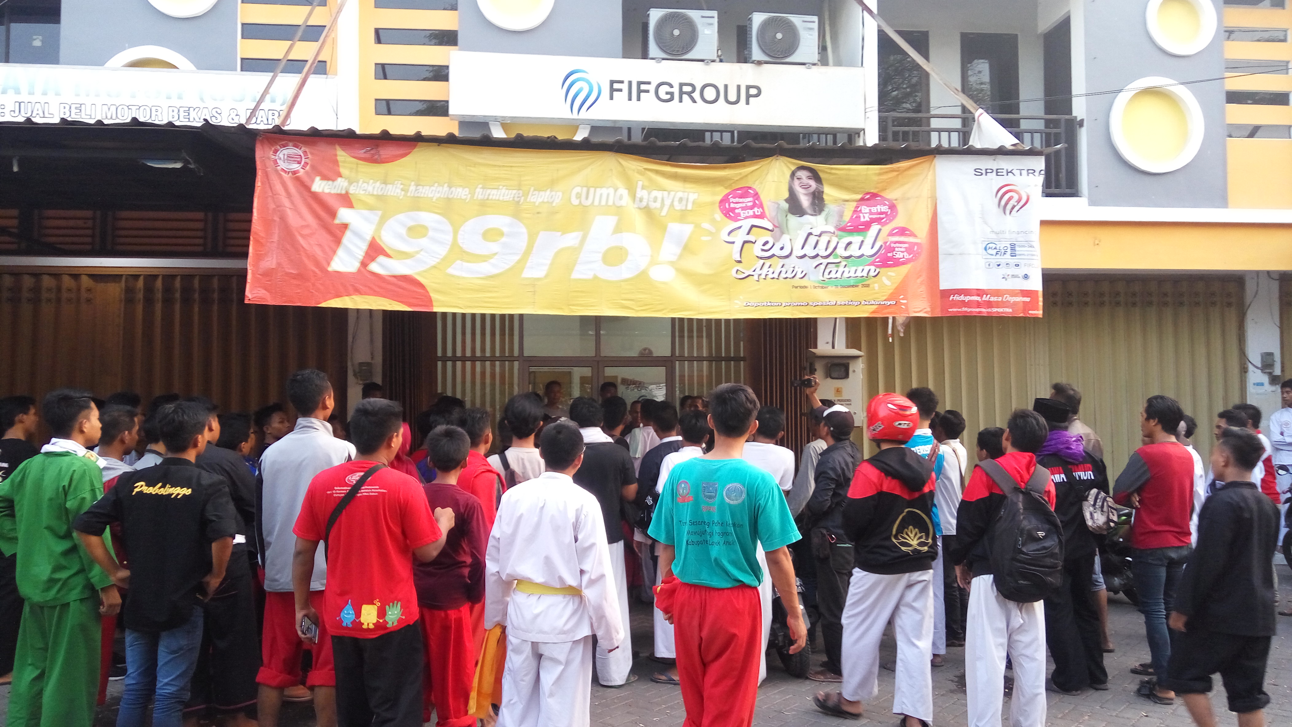 PROBOLINGGO-PANTURA7.com, Kantor Federal International Finance ( FIF) di Desa Sumberlele, Kecamatan Kraksaan, Kabupaten Proboliggo, digeruduk oleh puluhan pesilat dari Ikatan Pencak Silat Indonesia (IPSI) setempat, Jum’at (16/11/2018) sekitar pukul 16:00 WIB.