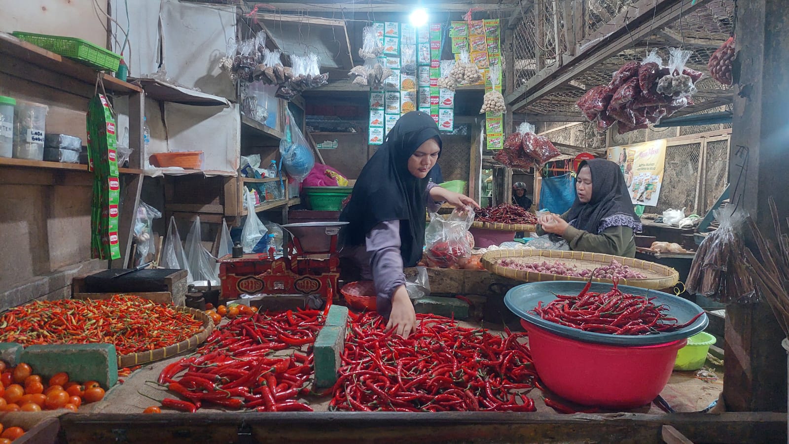 Sementara itu, harga bawang merah turun menjadi Rp30 ribu/kg dari sebelumnya Rp50 ribu/kg. Harga telur juga turun menjadi Rp27 ribu/kg dari sebelumnya Rp28 ribu/kg.