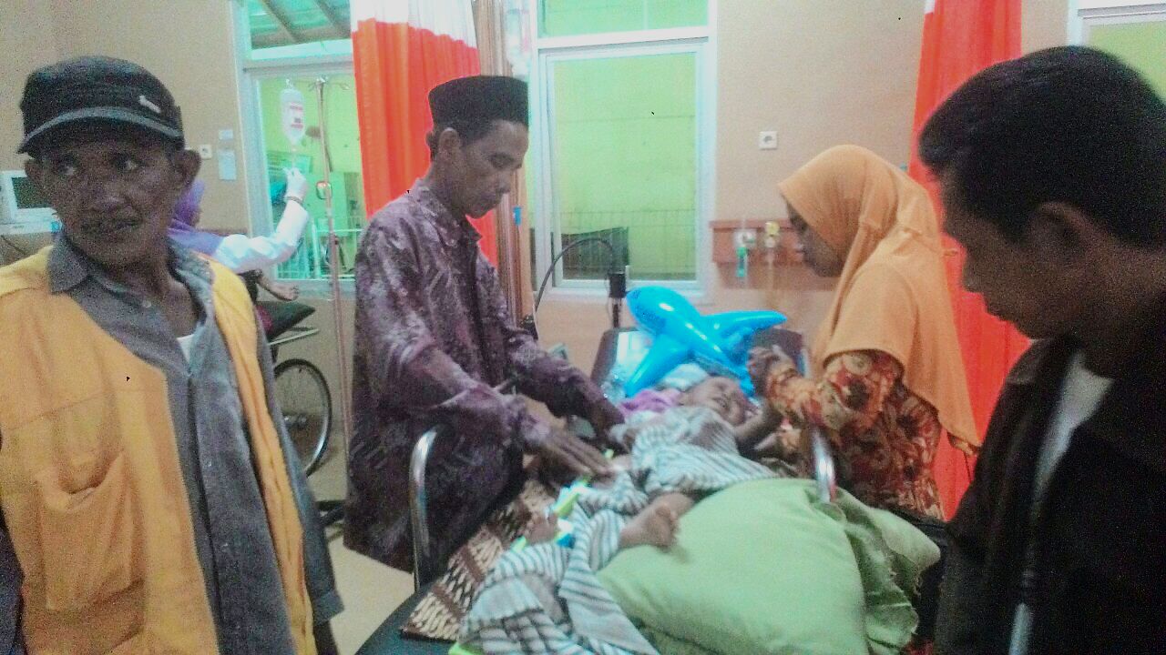 “Adik saya (Misbah_red) )sudah liting kanan dan berhenti di garis tengah karena masih ada kendaraan dari arah timur untuk nyebrang. Eh gak taunya kami ditabrak dari belakang oleh truk,” jelas Hafisah saat ditemui seusai menjalani perawatan.
